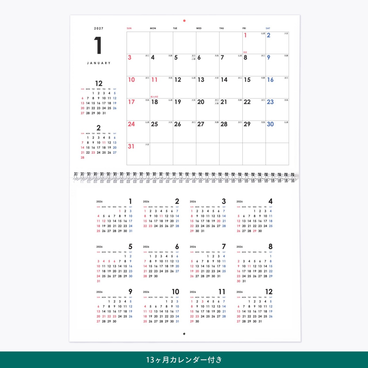 月ごとにめくる見開きA3サイズの月間カレンダーです。
